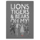 Veja este gráfico de tipografia divertida que diz: "Leões Tigers & Bears Oh My!", apresentando Scarecrow™, Tin Man™, Dorothy™ e Cowardly Lion™ andando em braço.