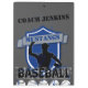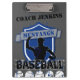 Características de design gráfico do basebol um jogador de beisebol, as palavras basebol, basebol e um protetor ou um emblema. Personalize este conselho de grampo com seus jogadores de beisebol favoritos nome, treinadores nome, estatísticos, depositários da contagem, nome da equipe, mamã da equipe, pai da equipe, nome dos patrocinadores e mais. Faz um presente personalizado agradável para um treinador de basebol do T-Ball aos majores.