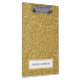 Uma imagem de fundo luxuosa festiva do brilho do ouro fornece um contexto glamoroso a este design personalizado da prancheta. Seu nome ou nome da empresa são denominados elegante em uma placa de identificação aparada ouro do falso na parte dianteira.