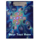 Uma imagem fractal multicolorida (rosa, verde, azul, amarela), que abre espaço sobre um fundo azul escuro. Uma interpretação de como o céu noturno pode parecer a um xamã siberiano enquanto em transe se comunicando com os espíritos.