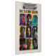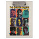 Grade colorida ao estilo retrô, com os membros do Esquadrão Suicida: Harley Quinn, Bloodsport, King Shark, Polka-Dot Man, Ratcatcher 2, Javelin, Peacemaker, The Thinker, e Coronel Rick Flag.