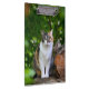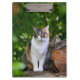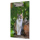 Um gato senta-se no jardim verde, próximo a um tronco e olha para frente - Dois lados diferentes