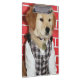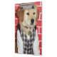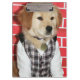 Esta prancheta caracteriza um filhote de cachorro do golden retriever vestido toda acima em um equipamento pequeno bonito.