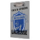 Características de design gráfico do Lacrosse um jogador do Lacrosse, o Lacrosse das palavras e um protetor ou um emblema.  Personalize este conselho de grampo com seus jogadores RELAXADO favoritos nome, treinadores nome, estatísticos, depositários da contagem, nome da equipe e mais.  Excelente como um obrigado você presente, prêmio, ou prêmio.