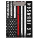 Um nome feito sob encomenda afligiu a prancheta denominada sapador-bombeiro do escritório da bandeira americana do estilo. A linha vermelha fina que funciona através do centro é representante de profissionais do sapador-bombeiro.