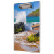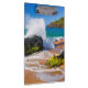 Surf caindo em rochas na praia Secret (Kauapea Beach), Kilauea Lighthouse visível, Kauai, Havaí| Russ Bishop/DanitaDelimont.com