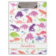 Os miúdos personalizaram a prancheta verde cor-de-rosa roxa das meninas do dinossauro da aguarela. Teste padrão do dinossauro da silhueta da aguarela em roxo cor-de-rosa e branco verdes. www.SamAnnDesigns.com