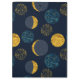 Diversão do padrão abstrato de lua e estrelas em um fundo azul escuro com sotaques de folha de ouro impressos.