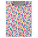 Este design de área de transferência apresenta um padrão de blocos multicores com iniciais personalizáveis para uma personalização sutil, mas uma instrução em negrito.