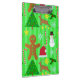Este design de Natal bonito tem uma colagem de desenhos animados de Natal divertidos e festivos. A design inclui uma árvore de Natal, uma rena, um boneco de neve, um homem de pão de gengibre, canetas doces, conletão, chapéu de Papai Noel e flocos de neve e estrelas. O fundo é stripey, em dois tons de verde claro. É um design de Natal bonito e único para a temporada de férias.