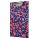Esta design apresenta uma ilustração desenhada à mão de belas flores vermelhas contra um fundo azul marinho. Ela tem uma aparência fofa e peculiar, embora também permaneça muito elegante.