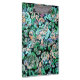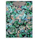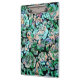Um padrão floral vibrante mostra uma variedade de flores verdes e de pêssego, folhas girando sobre um fundo escuro. Detalhes incríveis e tons harmoniosos criam uma sensação de profundidade e movimento.