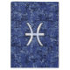 Um sinal de cromo como Peixes zodíaco num fundo marinho azul de design de camuflagem digital. Um design moderno urbano para uma ideia personalizada de presente de aniversário de excelente. Use o link "Perguntar a este Designer" para entrar em contato conosco com suas solicitações especiais de design ou para obter assistência com seu projeto de personalização.