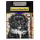 Um cachorro bonito olhando para você com seus olhos vermelhos brilhantes sobre um trilho o filhote um Puppy preto e branco chamado peter