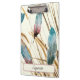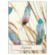 Penas sobre fundo de erva em aquarelas azuis e rosadas