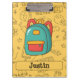 Gear up for a fantastic new school year with this cheerful and customizable Clipboard! Featuring a vibrant blue backpack surrounded by playful black-and-white school doodles like books, a globe, and a school bus on a bright yellow background. This fun design is perfect for organizing all your notes and assignments. Easily add your name, grade, or a special message to make this Clipboard uniquely yours. An exciting and personalized accessory for the 'Back To School' season!