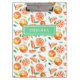 Personalized clipboard featuring cute hand painted watercolor orange citrus fruit