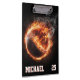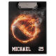 Personalized Number and Name Baseball Ball on Fire Clipboard