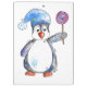 Esta é uma pintura mestiça original de um pinguim branco segurando um pirulito.