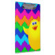 Pintinho feliz sobre fundo colorido, ilustração de desenho animado