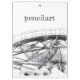 Desenho de lápis.Artista de Zolotareva. Pêncilart de tendências modernas monocromáticas brancas pretas. Há uma bela ponte sobre o lago. Você pode adicionar nome ou texto personalizado. Personalizar este modelo