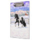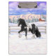 Pinto Negro Piebald Gypsy Vanner Draft Horse Trotando em Neve.