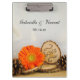 Organize seus papéis e anotações de casamento em um lugar conveniente com a encantadora prancheta de Planejamento de Casamento Russo Laranja-Daisy Woodland. Este personagem casual, porém clássico, de floresta ao ar livre ou prancheta de casamento da floresta apresenta uma fotografia típica digitalmente melhorada de uma flor de margarida laranja, fatias naturais de madeira com a palavra LOVE nela, cone de pinheiros castanhos e véu-bridal branco, com um fundo de braçadeira e cebola branca, e faz um presente único para uma festa de noivado ou chá de panela.