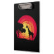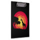 Ilustração do pôr do sol africano com sol vermelho, girafa e decoração da silhueta de árvore em fundo preto. É possível mudar a cor de fundo e adicionar uma diferente à design com sua escolha.