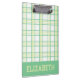 A mix of pastel green and lime modern plaid pattern, with a pink color block and custom name written in varsity-style font. Pastel hues meet clean lines, turning an everyday desk accessory into a little piece of art. Use the clipboard to hold sketches, lesson plans or daily notes while adding personality and creativity to your workspace. Click the edit button to move or scale the pattern, and personalize with your name to make it one-of-a-kind. Thanks for viewing an Eria Daisy Art design!