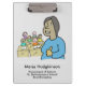 Imagem de uma professora com sua turma. Adicione seu nome e informações da escola. A mulher é asiática. Quadro personalizado para uma professora asiática.