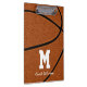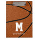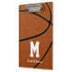 Esta prancheta de basquete personalizável para o treinador ou o estatístico da equipe apresenta a imagem de uma bola de basquete com um destaque detalhado "pebble" em seus painéis - A cor dos painéis de basquete PODE ser alterada clicando no botão azul "Editar Design" acima - personalize com o nome e o monograma do treinador - por katz_d_zynes