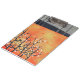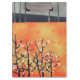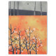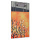 Uma pintura paisagística de Blackthorn floresce em primavera num fundo laranja coral.
