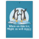 Quando no gelo fino, o poder dançar também. Slogan engraçado e espirituoso/dizer com os dois pinguins que dançam junto em gelo rachado. O que é o sentido da preocupação quando você não puder mudar as circunstâncias. Não se preocupe, esteja-se feliz! Com um fundo azul. Design do pinguim do inverno.