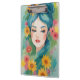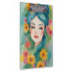 Este design vibrante e caprichoso apresenta um retrato abstrato de uma mulher com cabelo azul lacrimejado com flores coloridas. Sua expressão serena é acentuada por olhos fechados e lábios vermelhos, dando a ela uma aparência de sonho. Ao redor dela estão girassóis vibrantes, flores cor-de-rosa, e uma variedade de folhagem verde, criando uma atmosfera exuberante, semelhante a jardim. A peça tem um estilo de interface suave e vetorial, dando-lhe um sentimento moderno, mas romântico. A paleta de cores é dominada por chaleiras, amarelos, pinças e verdes, criando uma composição harmoniosa e atraente para os olhos. Personalizar com iniciais.
