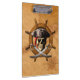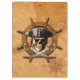 Aargh! Pirateie o crânio, o remendo do olho, o chapéu do pirata, e espadas cruzadas sobre a roda de um navio de madeira antigo em um mapa náutico do vintage.