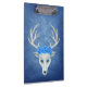 Esta área de transferência é uma mistura de tons azuis com uma cabeça branca de cervo místico com grandes galhadas, olhos azuis, e vestindo três rosas azuis bonito na frente e atrás.