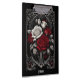Rosas vermelhas e brancas em um vaso, seguradas em uma cinza, molhadas em ferro num fundo preto, criam uma bela prancheta de gótico.