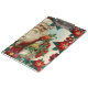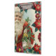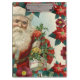 Vintage illustration of Santa Claus bringing gifts and presents for Christmas, decorated with holly berries and poinsettias.
