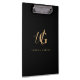 Escrito monograma de ouro minimalista contra fundo preto. Personalize facilmente o nome da escolha e o monograma na frente e atrás.