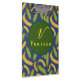 Bela Área de Transferência de Script Monograma de Banana Azul Folha-Tropical é um design moderno com vibrações havaianas com abundância de folhas verdes e bananas. Compre uma hoje!