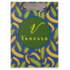 Pranchetas Script Monograma de Folha Azul Folha Tropical