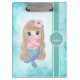 Sereia adorável em fundo azul. Ideia romântica perfeita para ela em qualquer ocasião. Selecione o botão de fantasia para alterar o estilo da fonte.