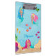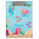 Esta divertida prancheta mostra princesas de sereia nadando entre peixes, cavalos marinhos e uma tartaruga fofa. Adicione seu nome para personalizar. Perfeito para o amante da sereia!