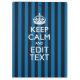 Um estilo personalizado de listras azuis de tendências decor Manter Calmo e Continuar dizendo em um presente personalizado. Humorístico ou caprichoso experimente suas palavras criativas nas duas linhas editáveis de texto. Lembre-se de usar letras CAPITAL para obter melhores resultados. Use o link "Perguntar a este Designer" para entrar em contato conosco com suas solicitações especiais de design ou para obter assistência com suas necessidades de personalização.