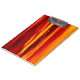 Este design apresenta uma imagem de nuvens em vários tons de amarelo e laranja sobre um fundo vermelho. É uma bela cena do pôr do sol.