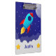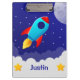 Organize your notes and documents in style with this fun and colorful Clipboards design featuring a cartoon rocket ship blasting off towards the moon and stars. Perfect for students, kids, or anyone who loves a touch of space adventure. Add your name or text for a personalized touch!