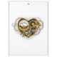 Mechanical, volumetric, steampunk heart with pressure gauge, steel and gold gears on white background. Steampunk style.
