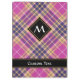 Design de cor rosa, ouro amarelo e azul-tartan. Um padrão perfeito. Texto personalizado e monograma.