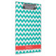 Pranchetas Teal White Chevron ZigZag Nome do Coral Monograma