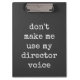 Esta divertida área de transferência apresenta uma citação de humor divertida para os diretores - Não Faça-me Usar a Minha Voz Diretora - em uma simples tipografia de máquina de escrever em preto e branco. A palavra diretor pode ser personalizada. ideia de presente de excelente!